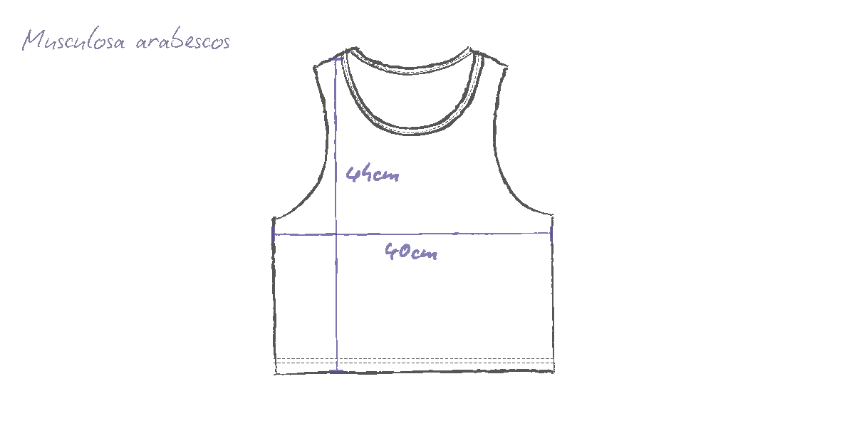 Top liso de tela vintage elastizada, con diseño de arabescos.
